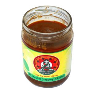 Made with the finest quality tamarind and jaggery, our chutney is infused with an aromatic mix of spices like cumin, ginger, and a hint of black salt, bringing a depth of flavor that’s both refreshing and satisfying. The natural sweetness of jaggery balances the tanginess of tamarind, creating a harmonious blend that can be enjoyed with a variety of foods. Whether served with crispy pakoras, samosas, grilled meats, or simply enjoyed with parathas or bread, our Imli & Gud Chutney adds an irresistible burst of flavor to every bite.
