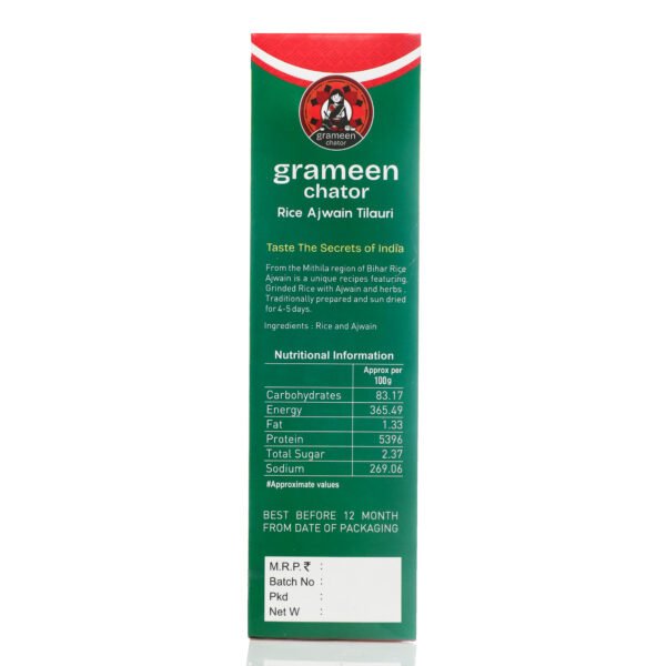 Rice Ajwain Tilauri is a distinctive snack that combines the crispiness of rice with the bold, aromatic flavor of ajwain, also known as carom seeds. This Tilauri variety is designed to offer a unique taste experience with each bite, thanks to the infusion of ajwain seeds.