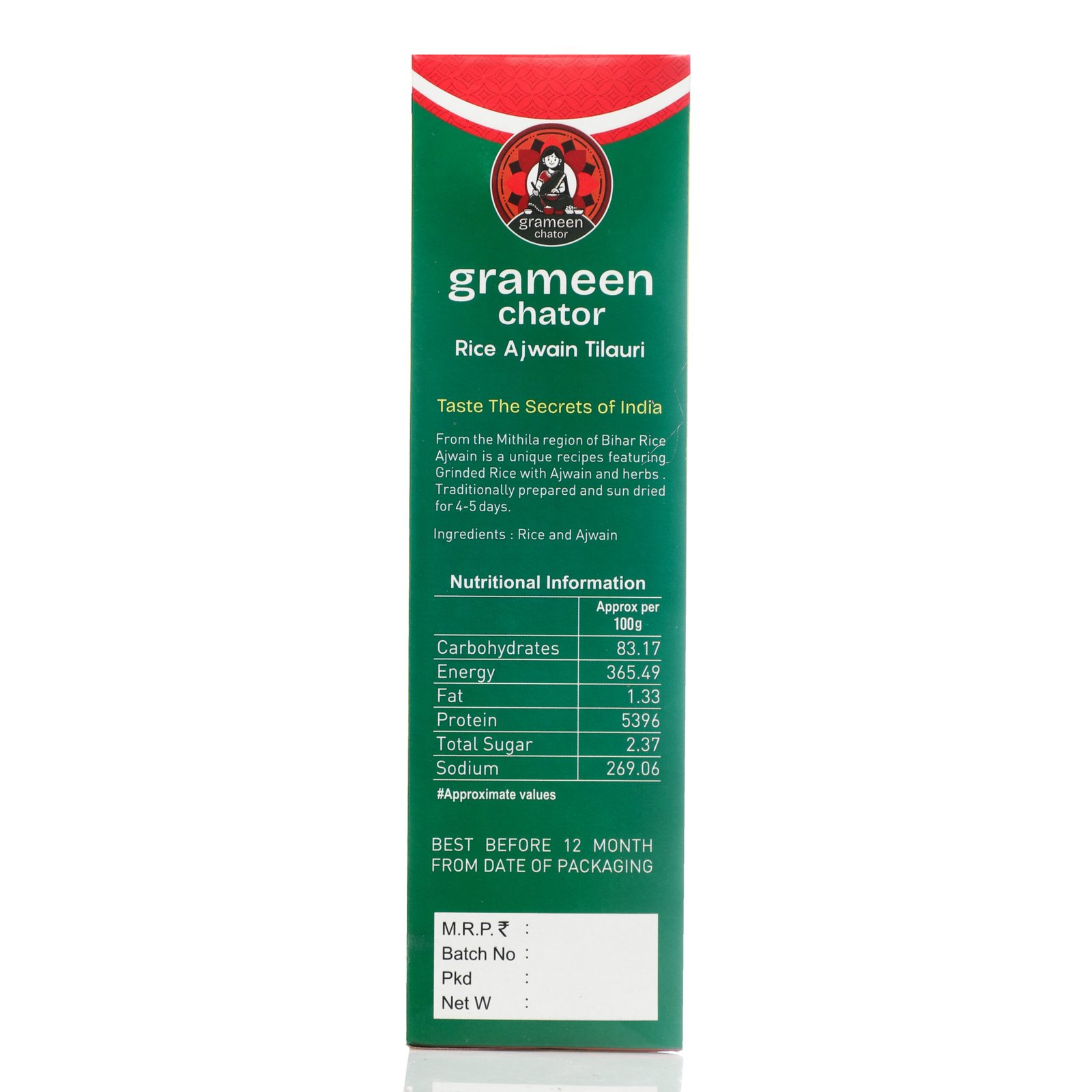 The base of Rice Ajwain Tilauri is made from high-quality rice, providing a light and crunchy texture that is both satisfying and enjoyable. The addition of ajwain seeds imparts a spicy, slightly bitter, and aromatic flavor that stands out among traditional snacks. Ajwain, known for its distinctive taste and digestive benefits, adds a refreshing kick to the Tilauri.